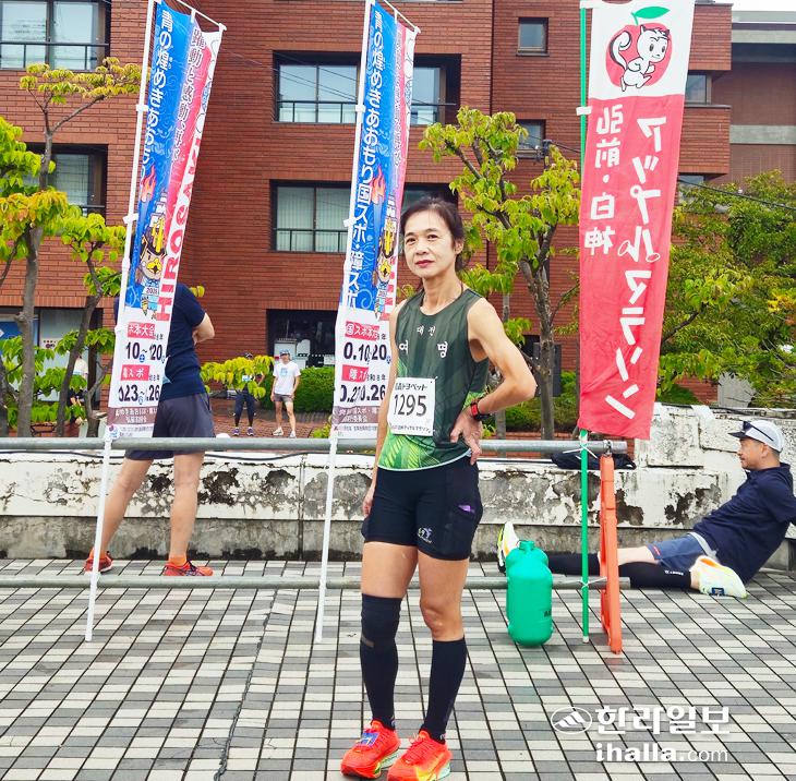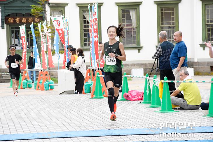 지난해 제주감귤국제마라톤대회 풀코스 여자부 전체 2위이자 내국인 1위인 이가연(56ㆍ대전여명달리기)씨는 5일 일본 아오모리현에서 열린 제23회 히로사키ㆍ시라카미 애플마라톤 풀코스에서 2위로 골인했다. 일본 아오모리현은 제주특별자치도와 자매결연 관계에 있다.