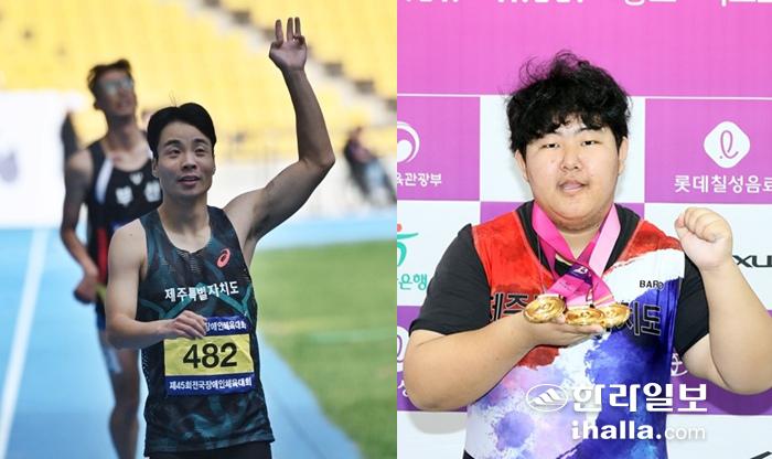제45회 전국장애인체육대회에서 육상 2년 연속 3관왕에 오른 강현중(왼쪽)과 한국신기록으로 역도 퍼펙트 3관왕에 오른 하현수. 제주자치도장애인체육회 제공