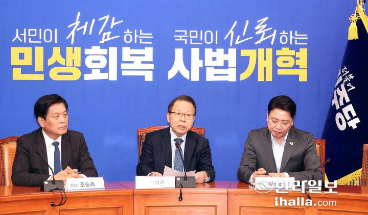 더불어민주당 중앙당 공천관리위원회는 27일 국회 당 대표실에서 공천 심사 1차 결과 브리핑을 진행했다. 연합뉴스