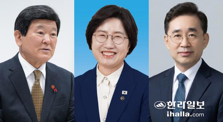 오는 6월 3일 제주도교육감 선거는 현역 교육감을 비롯해 3파전 양상을 띠고 있다. 사진 왼쪽부터 김광수 도교육감과 고의숙, 송문석 예비후보.(사진 순서는 현역부터 이름 가나다순)