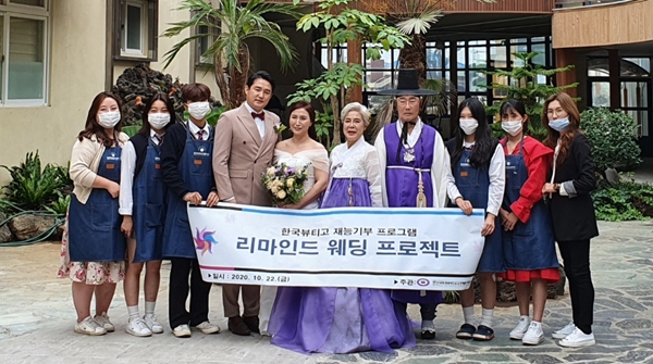 학생의 손으로 가장 소중했던 순간인 '결혼식'이 재현됐다.  한국뷰티고등학교는 지난 22일부터 23일까지 2일간 재능기부 프로그램으로 지역주민 2팀을 선발, '리마인드 웨딩 프로젝트'를 진행했다.  이번 프로젝트는 지역주…
