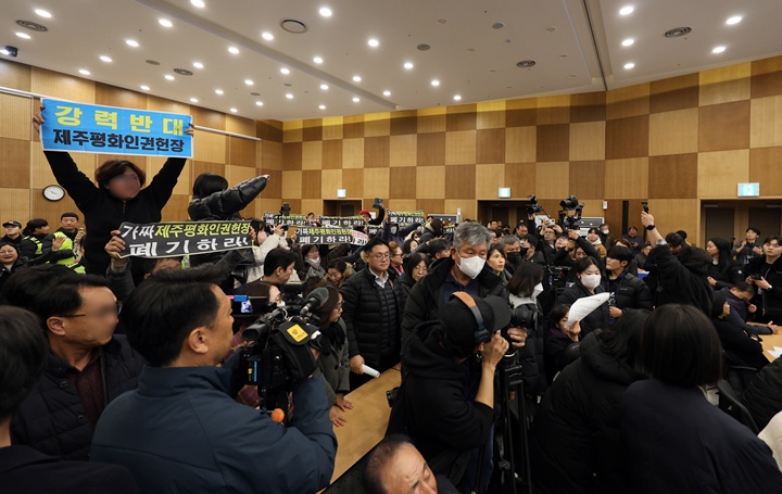 제주평화인권헌장 선포... 고성·욕설·몸싸움 '시끌'