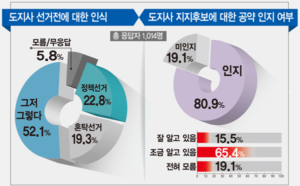 도민 88.9% '文-金 남북정상회담' 긍정 평가응답자 52.1% "제주도지사 선거 그저 그렇다" 6·13지방선거를 앞두고 제주도민들은 제주의 시급한 해결 현안 과제로 환경문제, 교통문제, 공항문제를 꼽았다. 또 도민 10명 가운데 9명이 …