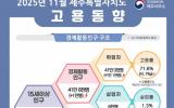 [한라일보] 제주지역 취업자 수가 전년 동월 대비 7개월 연속 증가세를 보이며 고용지표 개선 흐름이 이어지고 있다. 다만 건설업 고용 부진도 계속됐다. 국가데이터처 제주사무소가 10일 발표한 '2025년 11월 제주특별자치도 고…