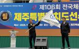[한라일보] 다음달 부산광역시에서 열리는 제106회 전국체육대회 제주선수단이 24일 결단식을 갖고 3년 연속 원정경기 세자리 메달 획득을 다짐했다. 이날 제주복합체육관에서 열린 제주선수단 결단식에는 이상봉 제주자치도의…