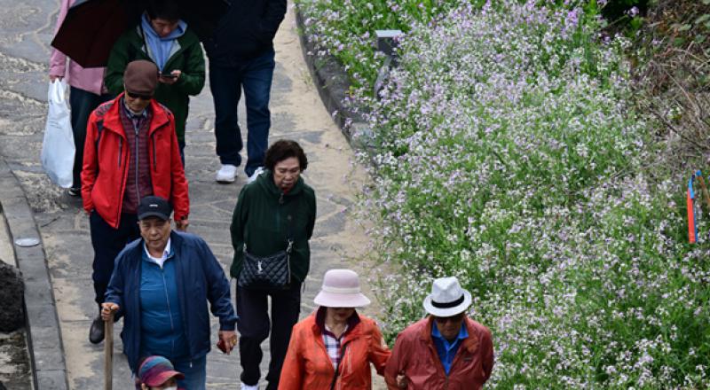 한담해안 꽃길 산책하는 어르신들
