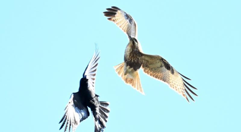 말똥가리-큰부리까마귀의 영역 다툼