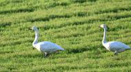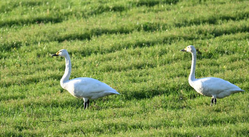 제주에서 잠시 쉬어가는 겨울 진객[한라일보] 4일 서귀포시 표선면 성읍리에 겨울 진객인 고니(천연기념물 201호) 두 마리가 찾아와 휴식을 하고 있다. 강희만기자