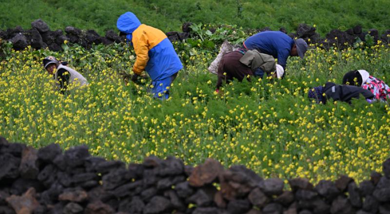 날씨는 추워도… 김 매는 농촌[한라일보] 강풍이 몰아친 4일 제주시 구좌읍 종달리 한 농경지에서 농민들이 김매기 작업을 하고 있다. 강희만기자