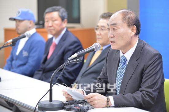 이날 기자회견에는 양우철·양대성·김용하 전 제주도의회 의장과 고석현 제주도의정동우회장 등이 자리를 함께 했다.