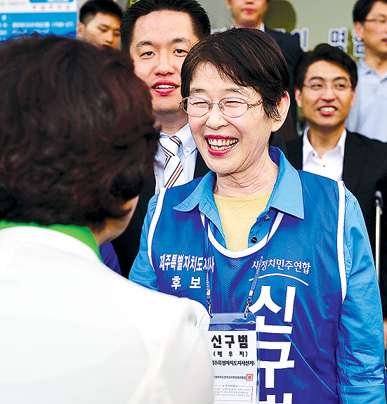 신구범 후보의 부인 김시자씨는 복지전문가로서 강의한 경험을 살려 정책도 조언한다.