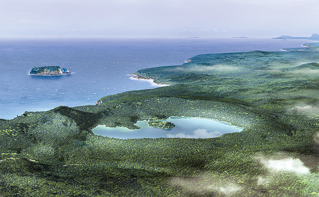 하논분화구 복원 시뮬레이션 모습.