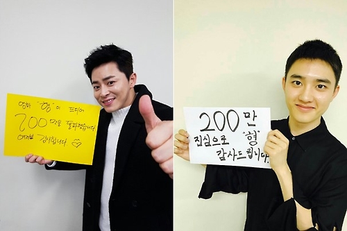 조정석(왼쪽)·도경수(오른쪽) 200만 돌파 인증사진=CJ엔터테인먼트 제공