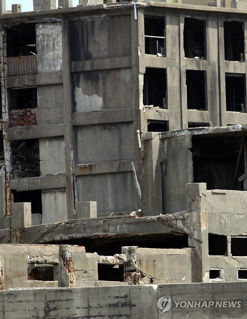 일제 강점기 조선인이 징용된 현장인 하시마(端島, 일명 '군함도')탄광이 세계문화유산에 등재된 지 5일로 1년째가 된다. 사진은 폐허로 방치된 군함도 내 건물의 1일 모습. 연합뉴스