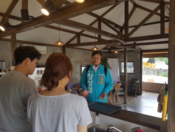 바른미래당 장성철 제주도지사 선거 후보는 6일 제주 서부지역에서 '발품유세'를 실시해 유권자들에게 지지를 호소했다.