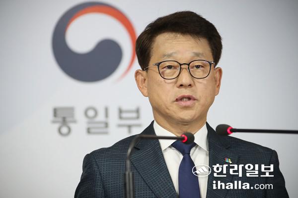 여상기 통일부 대변인이 4일 오전 정부서울청사 브리핑실에서 대북전단과 관련한 브리핑을 하고 있다. 연합뉴스