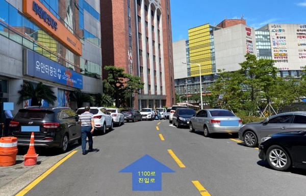양방향 주차로 차량 교행이 어려운 제주시 노형로터리 인근 일본국총영사관 앞 100m 구간에 대해 8월 3일부터 주정차 단속이 이뤄진다. 제주시 제공
