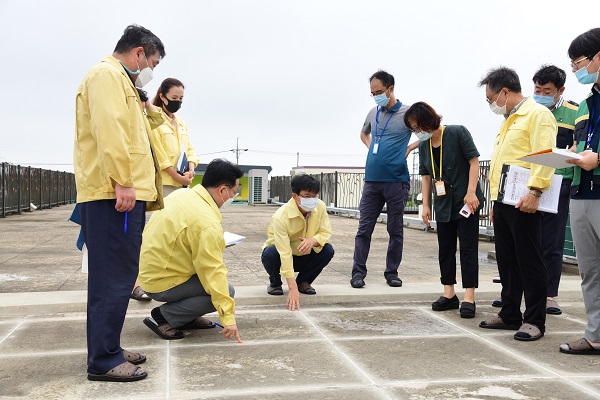 27일 이석문 제주도교육감이 덕수초등학교를 방문해 태풍 피해 등을 점검했다. 사진=제주도교육청 제공