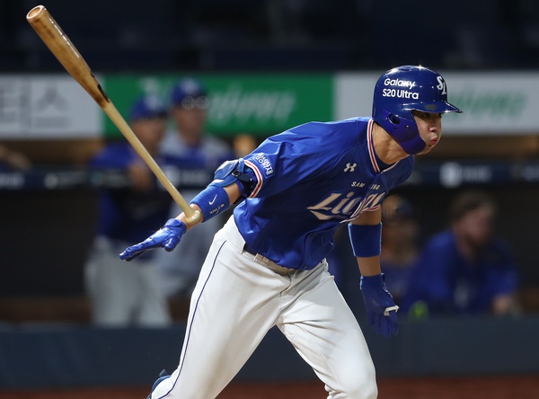 우전안타 치는 구자욱. 연합뉴스