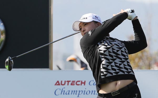 9일 오전 세종시 세종필드 골프클럽에서 열린 2020 오텍캐리어 챔피언십 with 세종필드 골프클럽 2라운드 1번 홀에서 고진영이 티샷을 하고 있다.연합뉴스