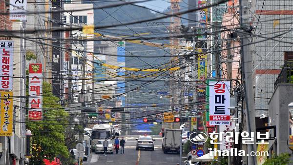 제주시 연동지역의 거미줄 같은 전선. 한라일보DB