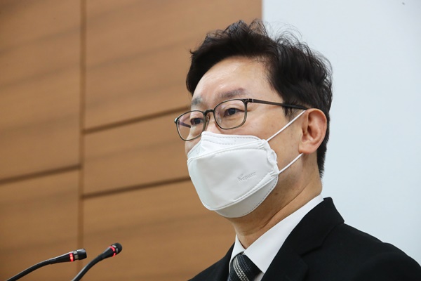 박범계 법무부 장관 후보자가 4일 오후 서초구 서울고등검찰청 기자실에서 언론 브리핑을 하고 있다.연합뉴스