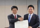 지난 2018년 11월 열린 교육행정협의회에서 이석문 교육감과 원희룡 도지사가 '고등학교 전면 무상급식' 예산편성 지원 등의 내용이 담긴 '제주미래와 교육발전을 위한 공동협력 합의문'을 최종 채택하고 활짝 웃고 있다. 한라일보DB
