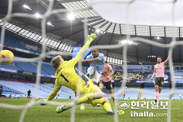 결승골을 터트리는 맨시티의 가브리에우 제주스. 연합뉴스