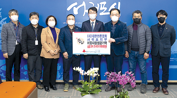 대한한돈협회 서귀포지부(지부장 고봉석)는 지난달 28일 서귀포시청 시장실을 방문해 코로나19 극복을 위한 소외계층 지원 성금으로 2454만원을 기탁했다.