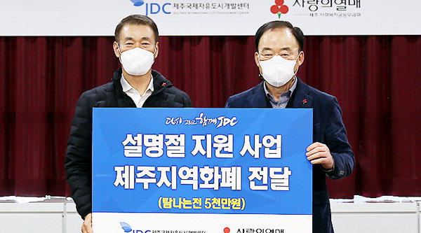 제주국제자유도시개발센터(JDC·이사장 문대림)는 제주사회복지공동모금회(회장 김남식)에 제주지역화폐(탐나는전) 5000만원을 지난달 29일 전달식을 통해 기부했다.