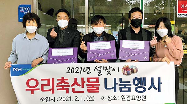 NH농협 제주노조(위원장 고창균)와 농협은행 제주한라대학교지점(지점장 김대현)은 지난 1일 원광요양원에 설 명절 축산선물세트 50상자(100만원 상당)를 전달했다.