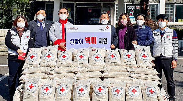 대한적십자사제주특별자치도지사(회장 오홍식)는 지난달 28일 제주적십자사 앞마당에서 설맞이 취약계층을 위한 백미 200㎏을 제주시홀로사는노인지원센터(센터장 김종래)에 전달했다.