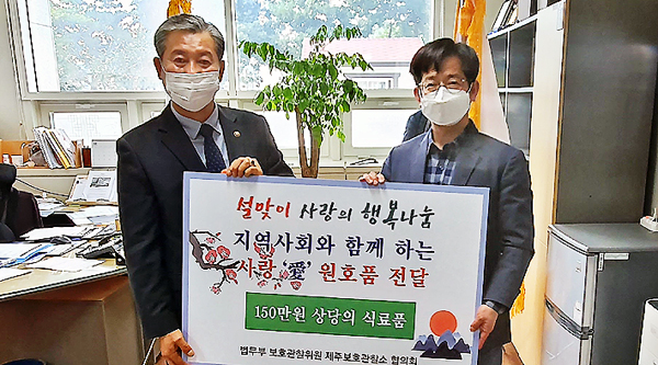 법무부 제주보호관찰소(소장 김기환)는 2일 보호관찰위원, 제주보호관찰소 협의회장 등 임원 4명이 참석한 가운데 150만원 상당의 원호물품 전달식을 개최했다.