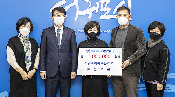 서귀포여자고등학교 총동문회(회장 강복실)는 지난달 28일 서귀포시청 접견실에서 (재)서귀포시교육발전기금(이사장 현봉식)에 서귀포시교육발전기금 100만원을 기탁했다.