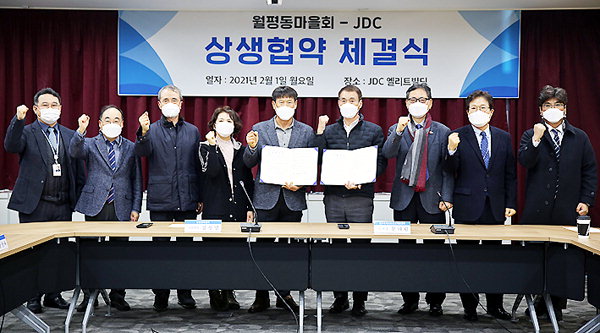 JDC와 월평동 마을회는 이번 상생협약을 통해 제주첨단과학기술단지 2단지 조성사업의 성공적인 추진과 마을회 발전 등 지역경제 활성화에 함께 노력키로 했다.