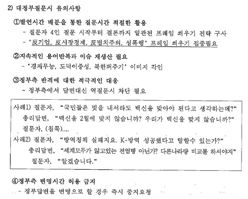 국민의힘 '대정부질문 사전전략회의 관련' 문건.