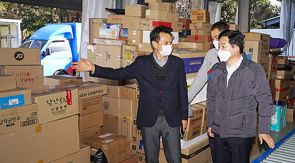 원 지사는 4일 오후 3시쯤 제주시 오라동 소재 CJ대한통운 오라지점을 방문했다. 이날 방문은 코로나19로 택배 물량이 늘면서 택배종사자들의 과로와 안전문제 등이 꾸준히 제기되면서 도내 실태를 점검하기 위한 차원으로 마련됐다.