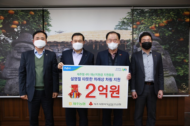 NH농협은행 제주영업본부(본부장 문상철)는 설맞이 사랑나눔 활동의 일환으로, 지난 4일 어려운 이웃의 차례상 마련에 도움을 주기 위해 제주사회복지공동모금회(회장 김남식)에 2억원을 기탁했다.
