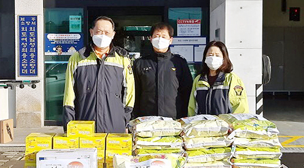제주소방서 외도119센터(센터장 윤상철)와 외도남녀의용소방대(대장 이선제·김경자)는 지난 6일 설 명절을 맞아 지역 내 어려운 이웃 13가구를 방문해 위문품(쌀·라면·커피)을 전달했다.
