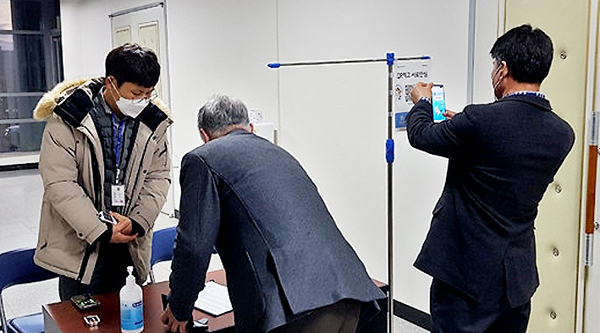 제주시 외도동(동장 한지연)은 지난 15일 주민센터 방문 민원인을 대상으로 코로나19 감염병 역학조사 편의성 및 활용도를 높이기 위해 추진한 제주형 전자출입명부시스템'제주안심코드'앱을 설치, 청사 출입 시 활용할 수 있도록 적극 홍보했다.