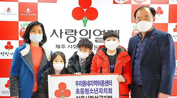 우리동네지역아동센터(센터장 안명희) 초등청소년자치회는 지난 16일 제주사회복지공동모금회(회장 김남식)를 방문해 이웃사랑 성금 18만6160원을 기탁했다.