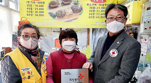 제주촘오메기(대표 이성자)는 지난 16일 대한적십자사제주특별자치도지사(회장 오홍식)에서 실시하는 적십자 희망나눔 명패 달기 캠페인에 동참했다.