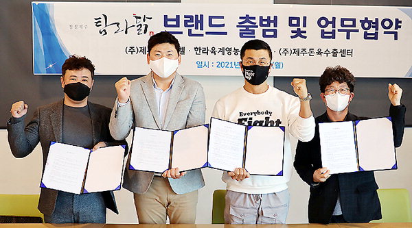 제주산 식품 전문 유통기업인 (주)제주블랙라벨(대표 최범수)은 최근 한라육계영농조합법인(회장 백영종) 및 (주)제주돈육수출센터(대표 하경수)와 3자간 업무협약을 체결하고 ‘청정제주 탐라닭’ 브랜드 런칭 행사를 가졌다.