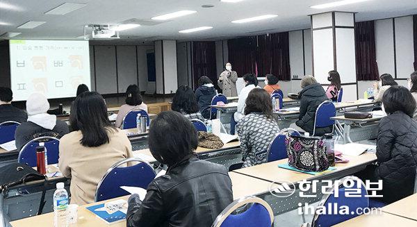 제주국제교육원(원장 강호준) 제주다문화교육센터는 지난 13일 중도입국, 외국인가정 자녀 등을 위해 한국어수업을 하는 한국어 강사 20명을 대상으로 '2021 노둣돌 한국어학교 강사 역량강화 연수'를 운영했다.