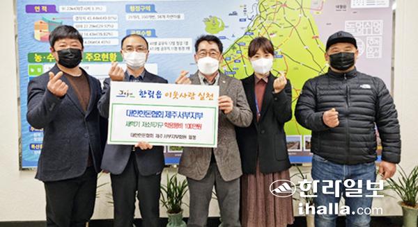 제주시 한림읍(읍장 김성철)은 지난 16일 (사)대한한돈협회 제주서부지부(지부장 김진삼)에서 새 학기를 맞이해 관내 저소득가정 자녀 학용품비 지원을 위한 상품권 100매(100만원)를 전달했다.