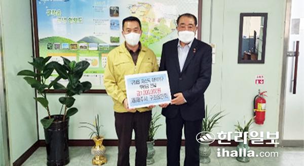 (재)제주시 구좌읍민회(회장 김영택)는 지난 16일 구좌읍사무소를 방문해 관내 저소득 취약계층 등 어려운 이웃을 위해 사용해 달라며 후원금 100만원을 기탁했다. 구좌읍은 이날 전달받은 후원금을 지역 내 불우이웃을 돕는 데 사용할 예정이라고 전했다.