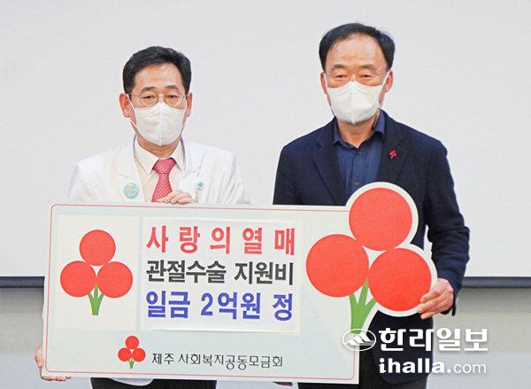 제주사회복지공동모금회(회장 김남식)는 지난 16일 제주대학교병원 2층 국제회의실에서 지원금 전달식과 함께 관절수술이 필요한 취약계층을 위해 관절수술 치료비와 주거환경 개선비 2억원을 지원한다고 17일 밝혔다.