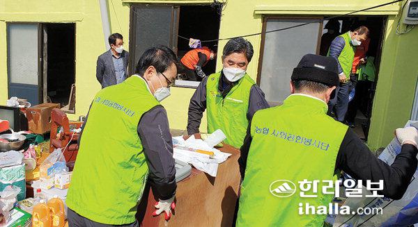 농협제주지역본부(본부장 강승표)와 한경농협(조합장 김군진), 제주특별자치도자원봉사센터(센터장 고태언)는 23일 직원봉사단과 자원봉사자 10여 명이 참여해 한경면 관내 고령 농업인 가정을 방문해 주거환경 개선과 생필품을 전달하는 희망나눔 봉사활동을 펼쳤다. 봉사단은 이날 노후화된 전기시설과 출입문 교체작업을 지원하고, 쾌적한 환경에서 생활할 수 있도록 도배작업과 집안 청소도 실시했다.