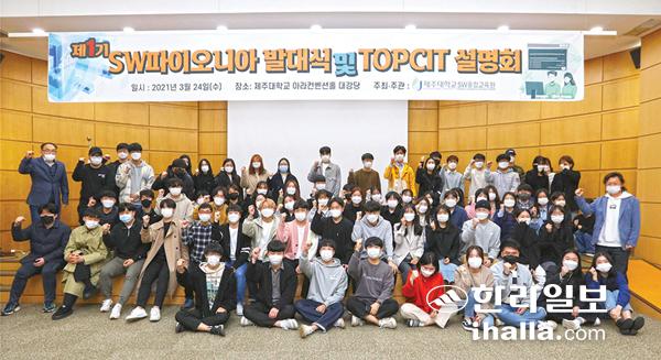 제주대학교 SW(소프트웨어)융합교육원(원장 송왕철 컴퓨터공학전공 교수)은 지난 24일 대학 아라컨벤션홀 에서 ‘제1기 SW파이오니아 발대식 및 TOPCIT(IT 역량지수 테스트) 설명회’를 개최했다.