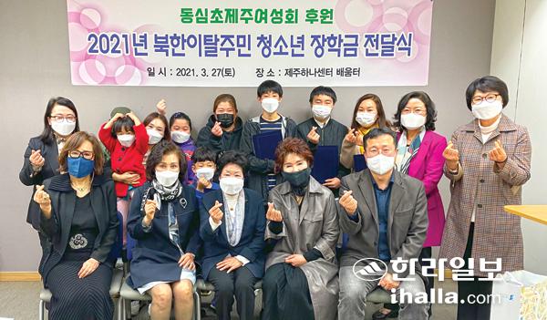 동심초 제주여성회(회장 임강자)는 지난 27일 제주 하나센터에서 ‘2021년 북한이탈주민 청소년 장학금 전달식’을 개최했다. 동심초 제주여성회는 100여 명의 회원이 십시일반 회비로 운영하는 순수봉사 단체이며, 1년에 2회 북한 이탈주민 청소년·이탈주민에 장학금과 정착자금을 지원하고 있다.